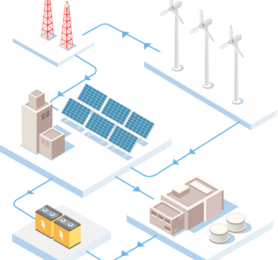 AI-powered EMS andsmart controllers ensuring real-time Source-Grid-Load-Storage optimization.